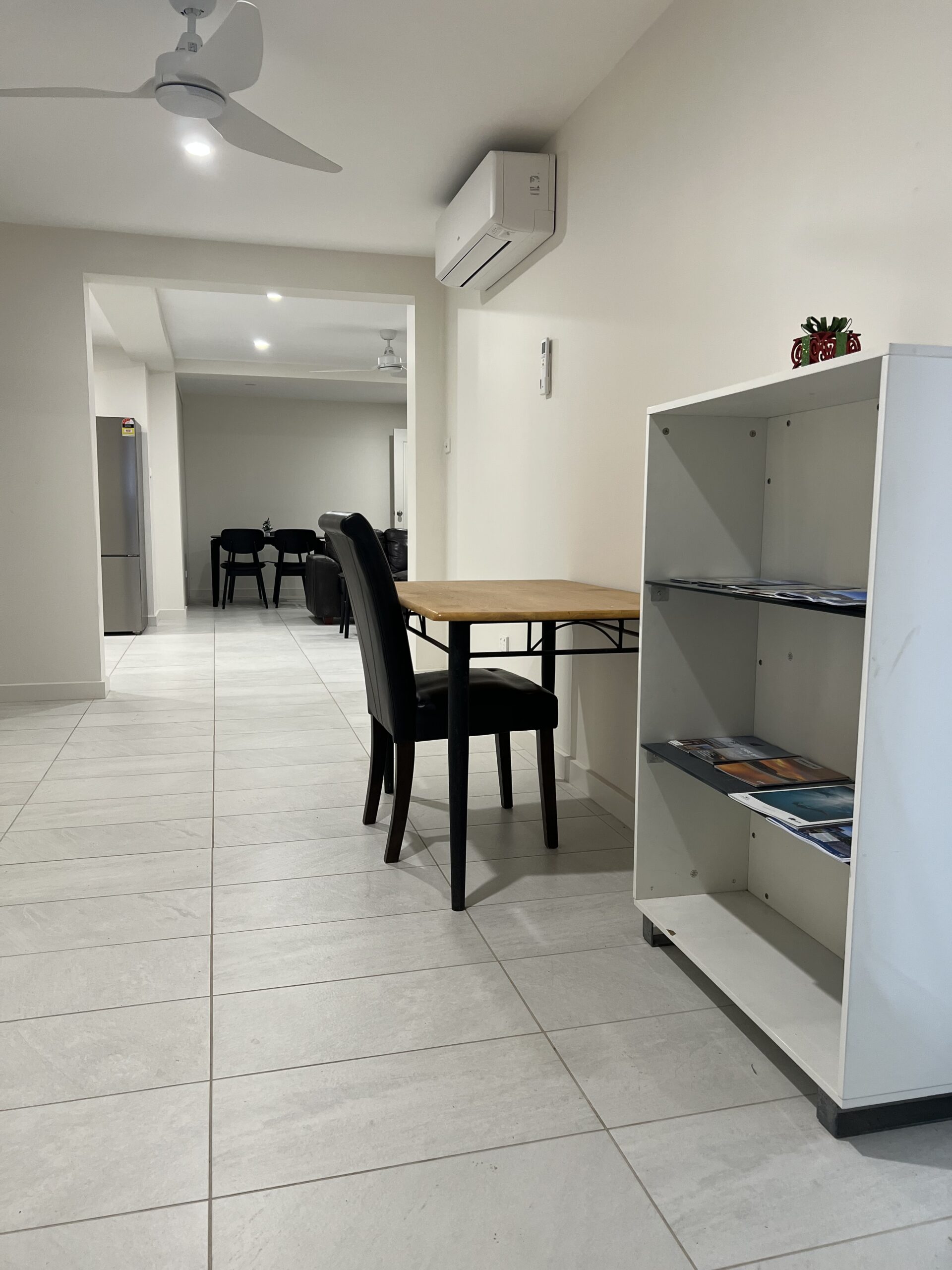 Self contained , Washing Machine , Reverse Cycle Air conditioner in front area , Fan in back bedroom Large Modern Kitchen, 9 Piece Dining Setting, 2 by 3 seater Leather Sofa, Extra Freezer. Large Standard TV and Vast Satellite TV Channels. Starlink Wi Fi thus good internet speed. Dish Washer. , Clothes line under the veranda, Outdoor Setting under the veranda. Wi fi from Star Link